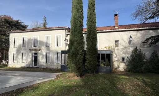Travaux de réfection de toiture sur une superbe maison à Castres, tuiles DC12 et zinguerie sur mesure, gouttières et abergement de cheminée en zinc.