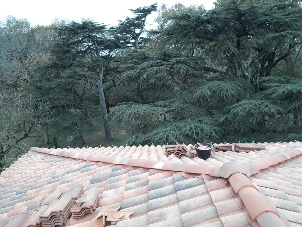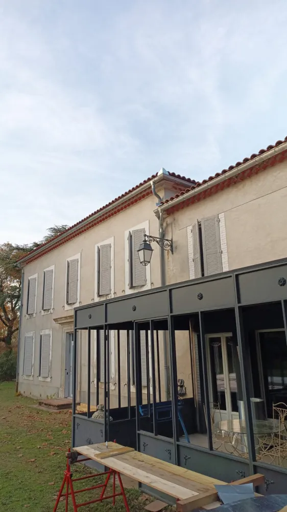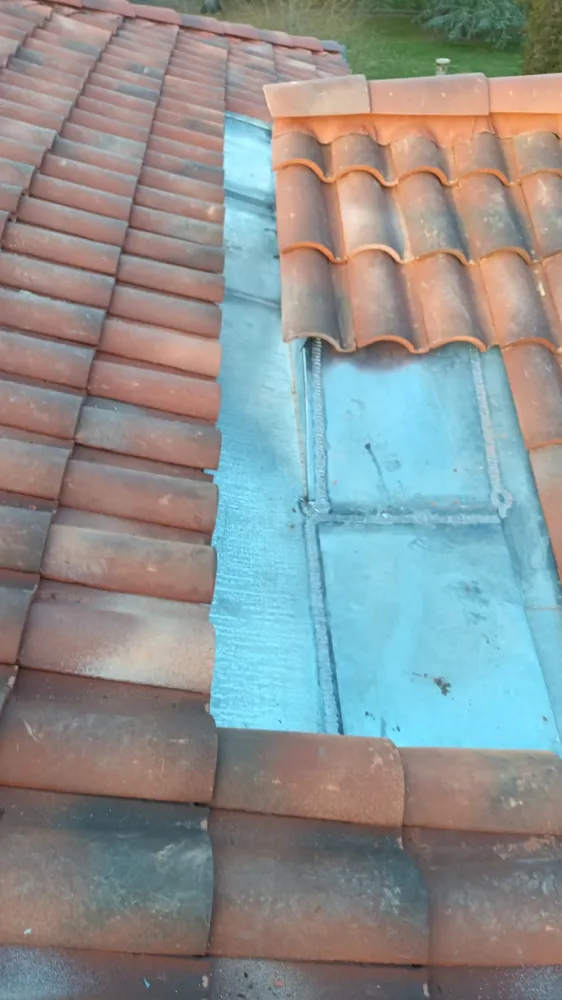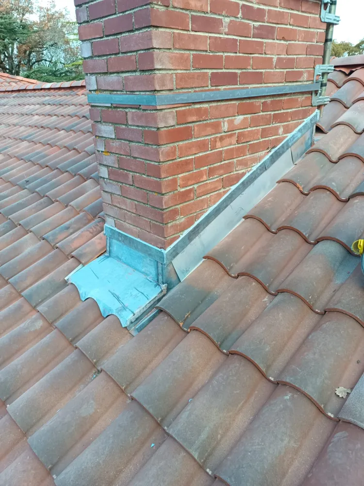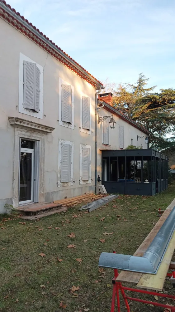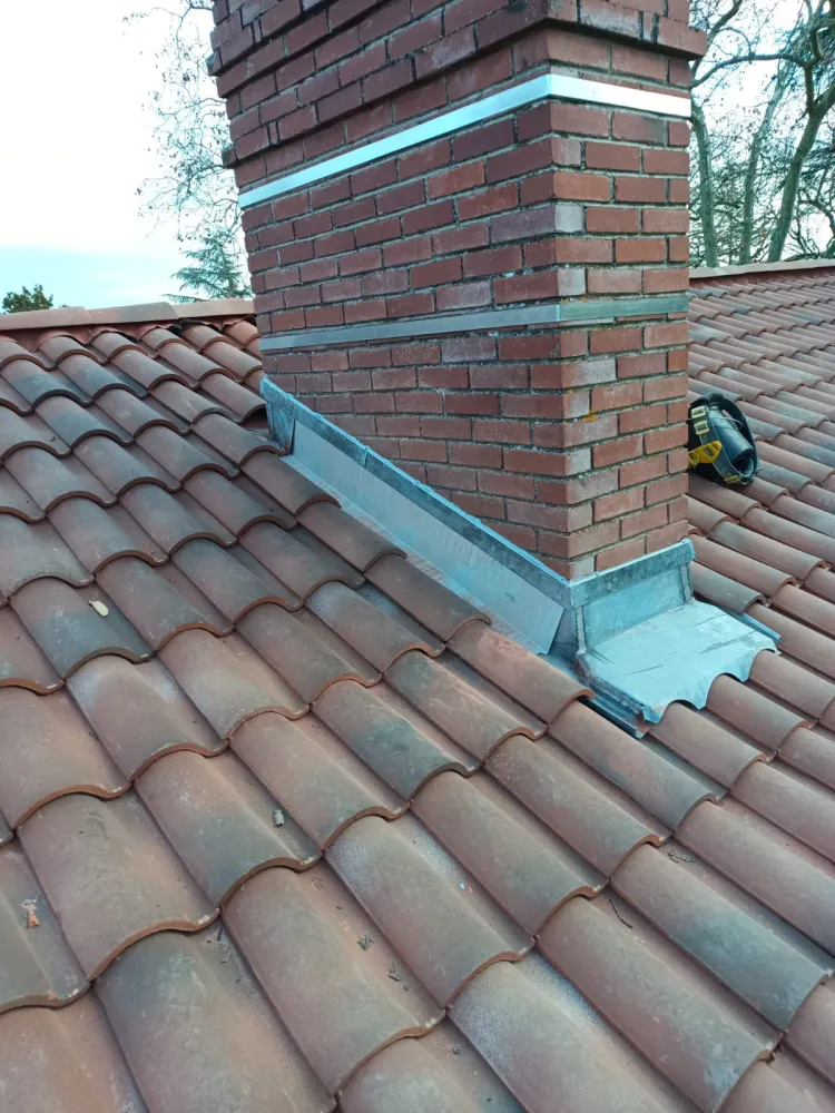 Travaux de réfection de toiture sur une superbe maison à Castres, tuiles DC12 et zinguerie sur mesure, gouttières et abergement de cheminée en zinc.