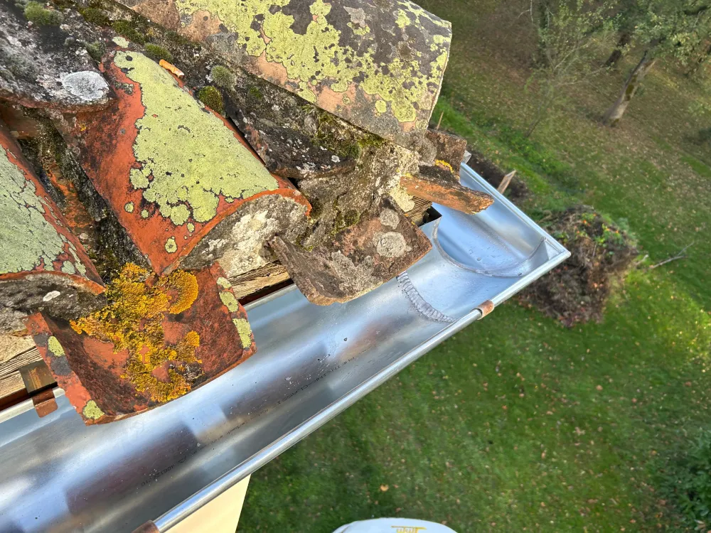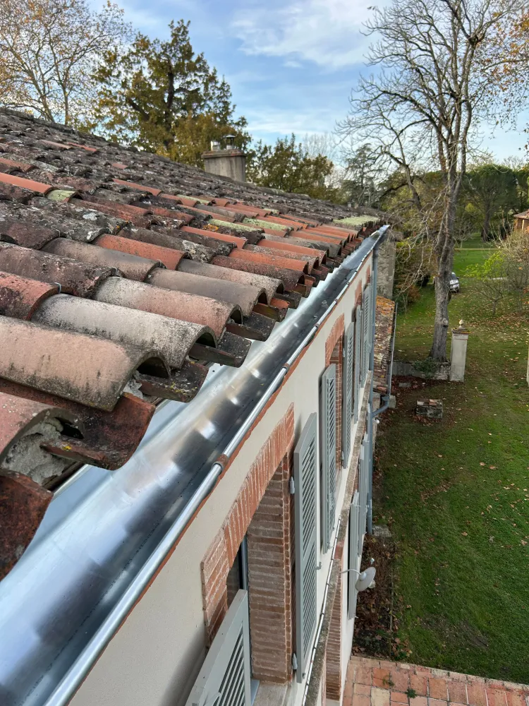 Fourniture et pose de nouvelles gouttières en zinc naturel sur les 4 pans, avec pente adaptée
